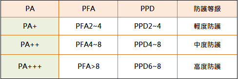 PA+可以延長2-4倍曬黑時間,PA++是4-8倍,最多標示到PA+++