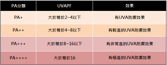 Protection Grade of UVA 值是日本化妝品公會針對紫外線 UVA 所訂定的防曬係數