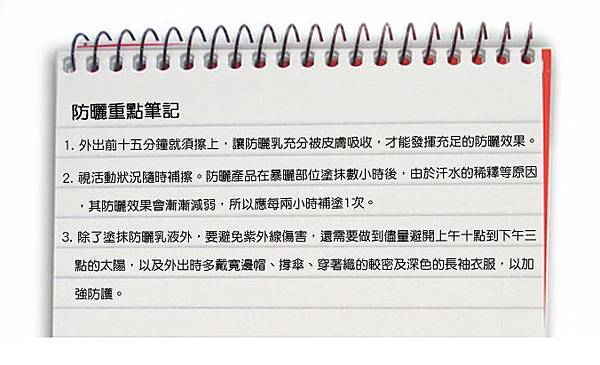 尤其游泳或戶外活動時,最好選擇有Water Proof(防水)或Water Resistant(防汗)標示的防曬乳液