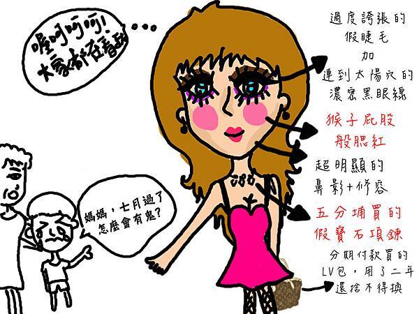 每個都化上濃眼妝,戴上誇張的假睫毛、腮紅、口紅