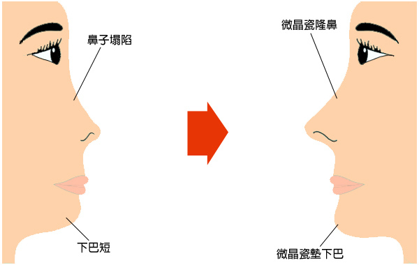 分別是晶亮瓷(微晶瓷)隆鼻、晶亮瓷(微晶瓷)墊下巴
