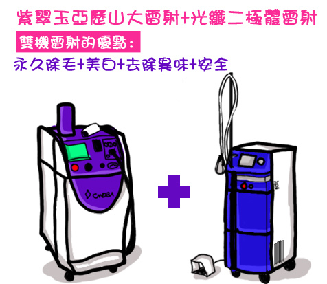 採用的是雙機種,也就是光纖二極體雷射:+紫翠玉亞歷山大雷射,