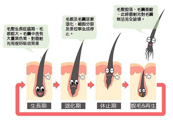 這也就是為什麼除毛沒辦法一次就除完,而必須分次才能達到最終效果的原因。
