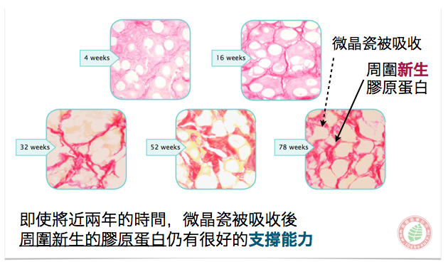 當打針進入組織間,這些穩定平滑的微晶瓷晶球會形成一個骨架